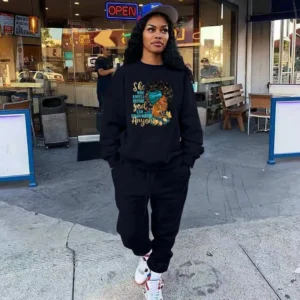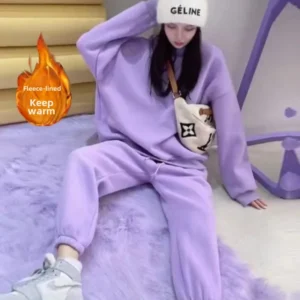 Plus Size 2023 Women’s Autumn/winter New Style Fleece-lined Thickened Casual Fashion Sports Suit Loose Fit Sweatshirt Trouser…