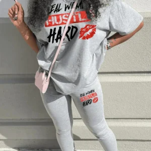LW Plus Size Two pieces sets Print Pants Set Spring summer casual short sleeve T-shirt + trousers women matching tracksuit set